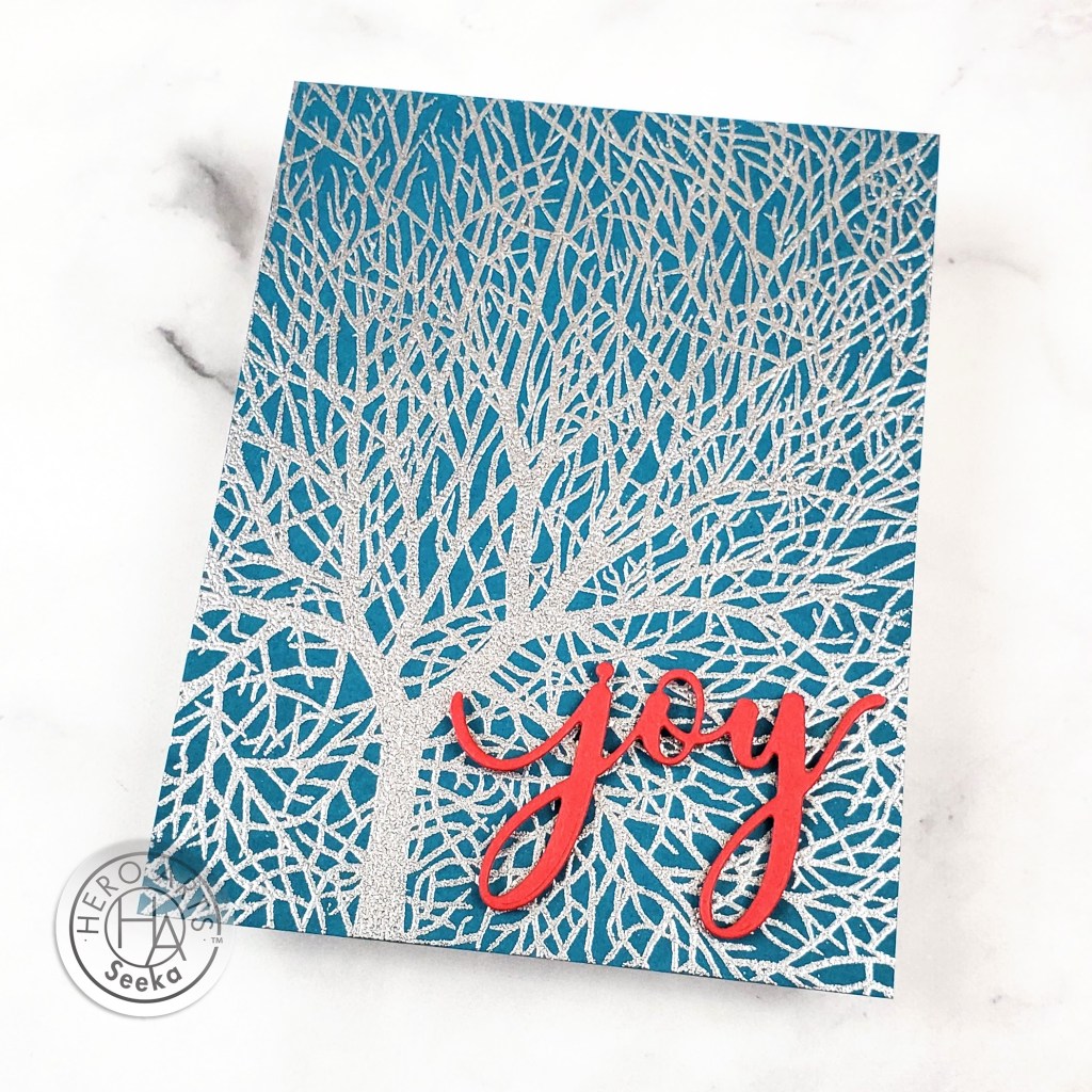 Both of your cards are gorgeous, but I especially like the icy look of the bare branched tree! And that red Joy, really gives some festive pop to your card.