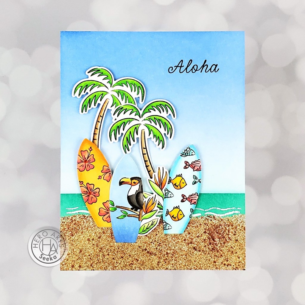 WOWEE! Love the way you’ve decorated the surfboards. Great scene. Thanks for including how you used the sand embossing powder. I wasn’t quite sure how that would work, but it does look sand.