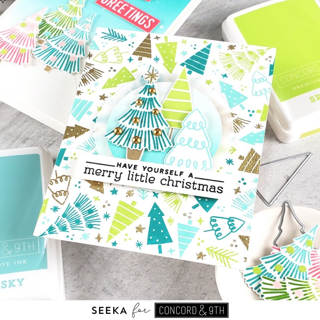 My first card today features the Tiny Trees Turnabout™ stamp set and coordinating dies (also available as a bundle) which, when stamped four times, results in a panel entirely filled with adorable trees, stars, and dots!