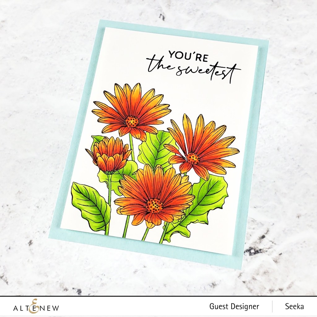 Hello and welcome! We’re celebrating the release of the new Altenew Paint-A-Flower: African Daisy Outline Stamp Set! If you arrived from Emily Midgett‘s blog, you’re right on track. If you want to hop along from the beginning, please visit the Altenew Card Blog. Be sure to check the bottom of this post for giveaway information and the full blog hop list.