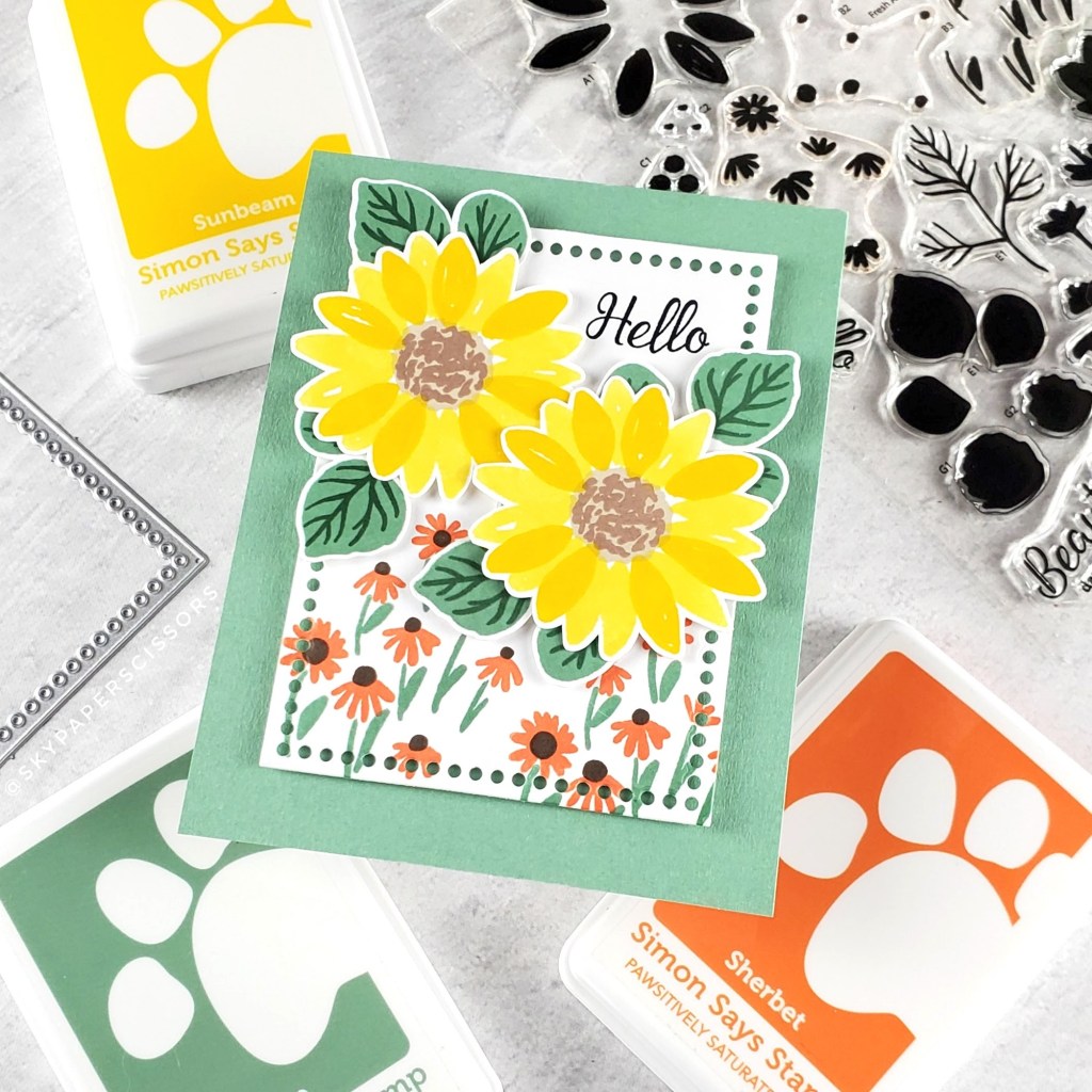 My card today features the Fresh Air Fall Flowers stamp set (also available with coordinating dies). I used a variety of Pawsitively Saturated inks to stamp the images: