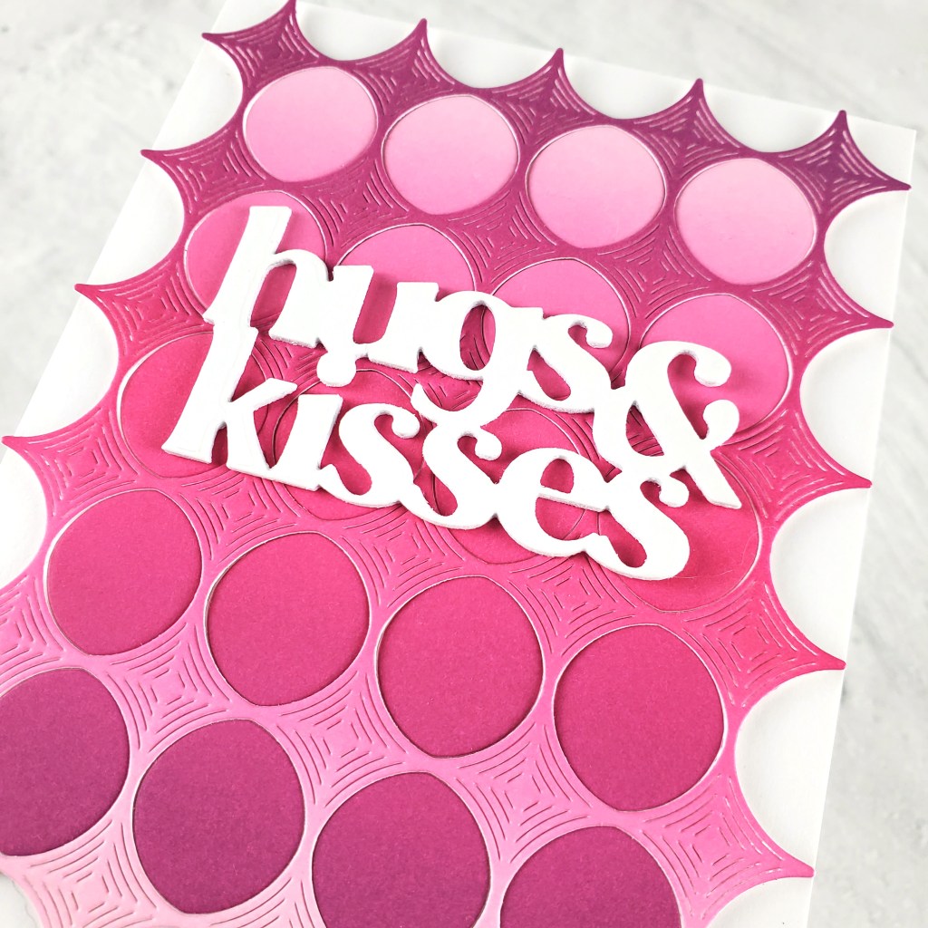 For the background, I used the included large cover die from the kit to cut a 4.25″ x 5.5″ panel of Ultra Pink cardstock (a half sheet is included in the kit). I love the beautiful texture this creates!