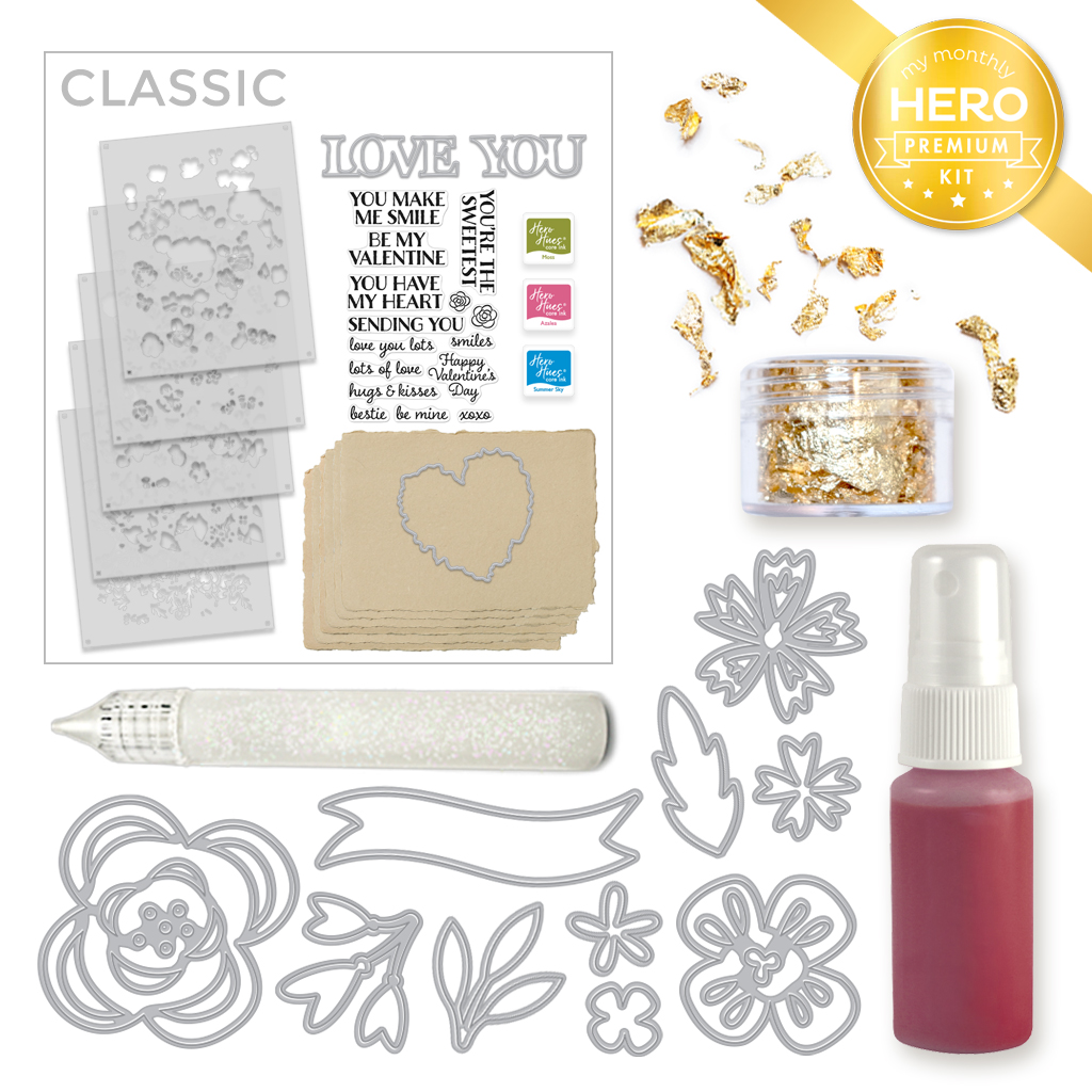 January’s Hero Studio collection “For the Love of Stamping” features a charming vintage typewriter, timeless hearts, and elegant florals. This collection is perfect for crafting heartfelt cards, love notes, and valentines for the ones you cherish most.