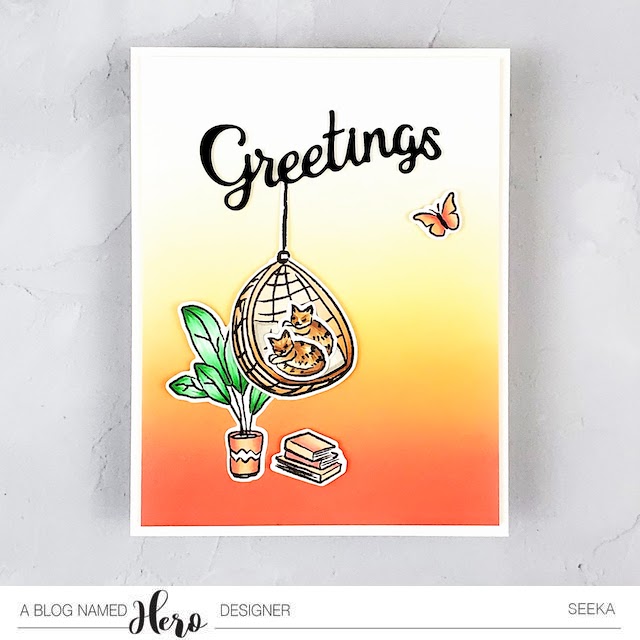 It’s the 15th and that means we have a new challenge up on A Blog Named Hero. This month’s theme is CAS(E) your favorite card and for my card today, I’m CAS(E)-ing the wonderful Laura Bassen. I chose this card, whose clean and simple design combined with bright and cheerful colors caught my attention and wouldn’t let go.