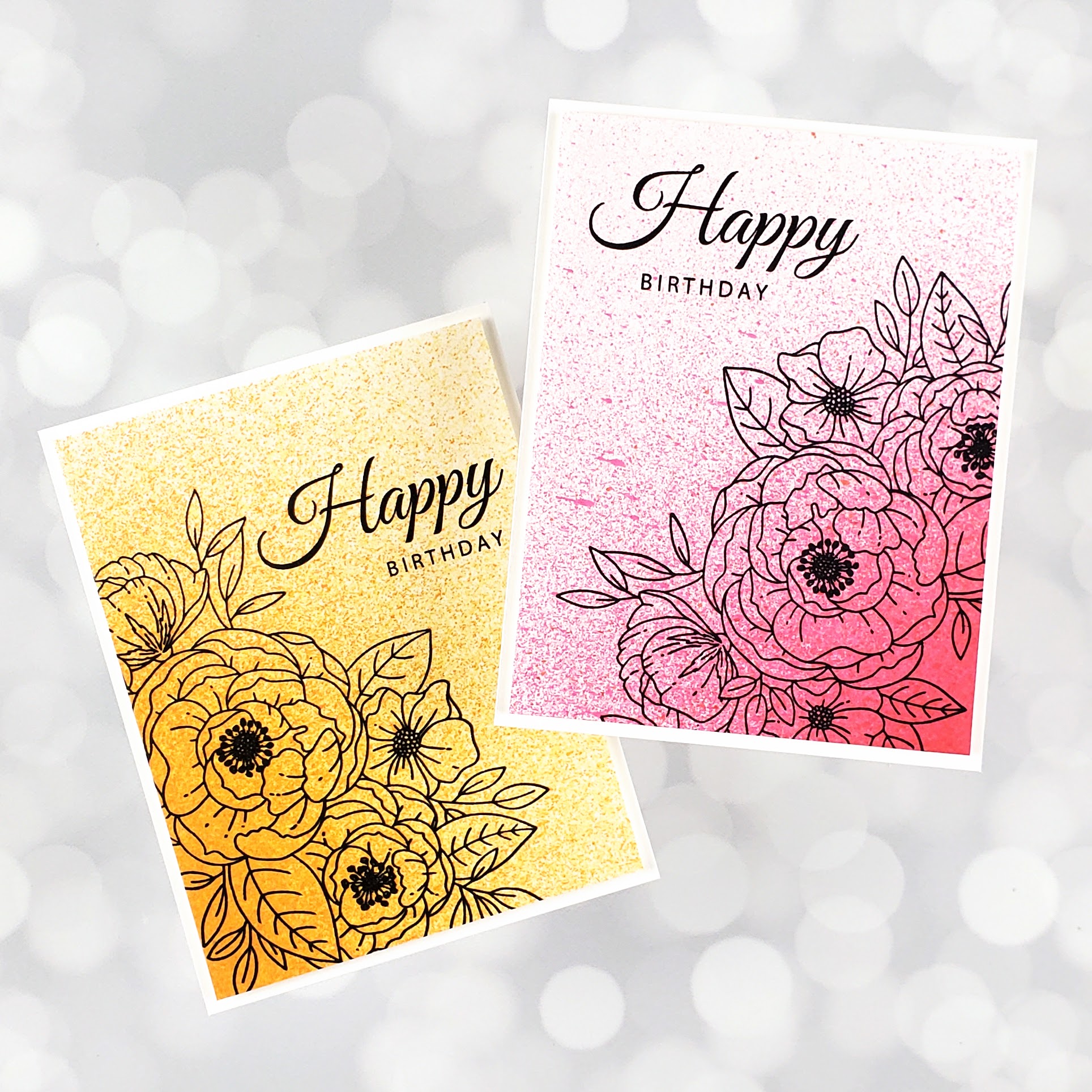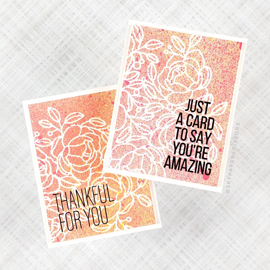 Today I’m sharing a card using an extra panel that I made a couple of months ago when I was playing with the Simon Says Stamp Peonies and Leaves stencil.