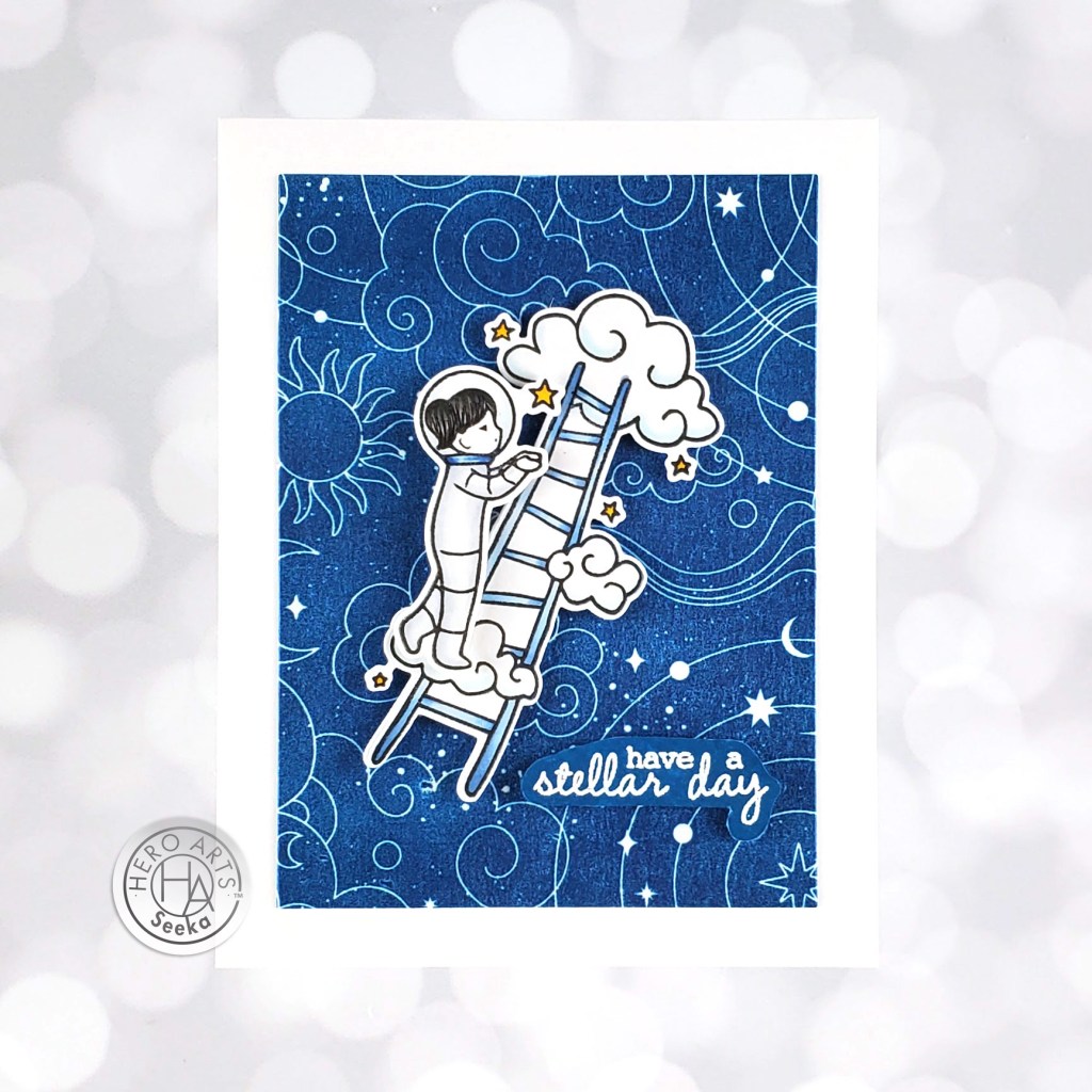 Hello and welcome! It’s release day at Hero Arts and we’re celebrating the celestial-themed December release with a blog hop full of inspiration and a giveaway. If you’ve arrived from visiting Mindy Eggen, you’re right on track! You can start from the beginning by visiting the Hero Arts blog.