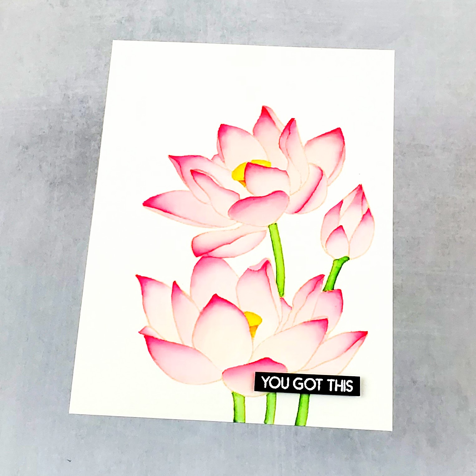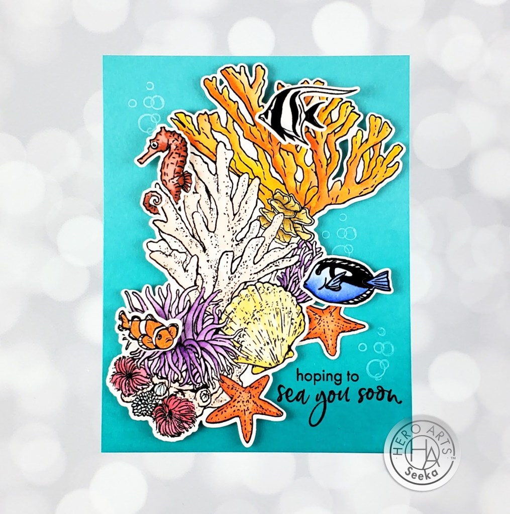 Today I’m sharing a card featuring the Topography background stamp from Simon Says Stamp. My first thought on seeing this background pattern was to color it in tropical ocean colors but I decided to use some yellow, orange, and peachy colors instead. What colors would you use?