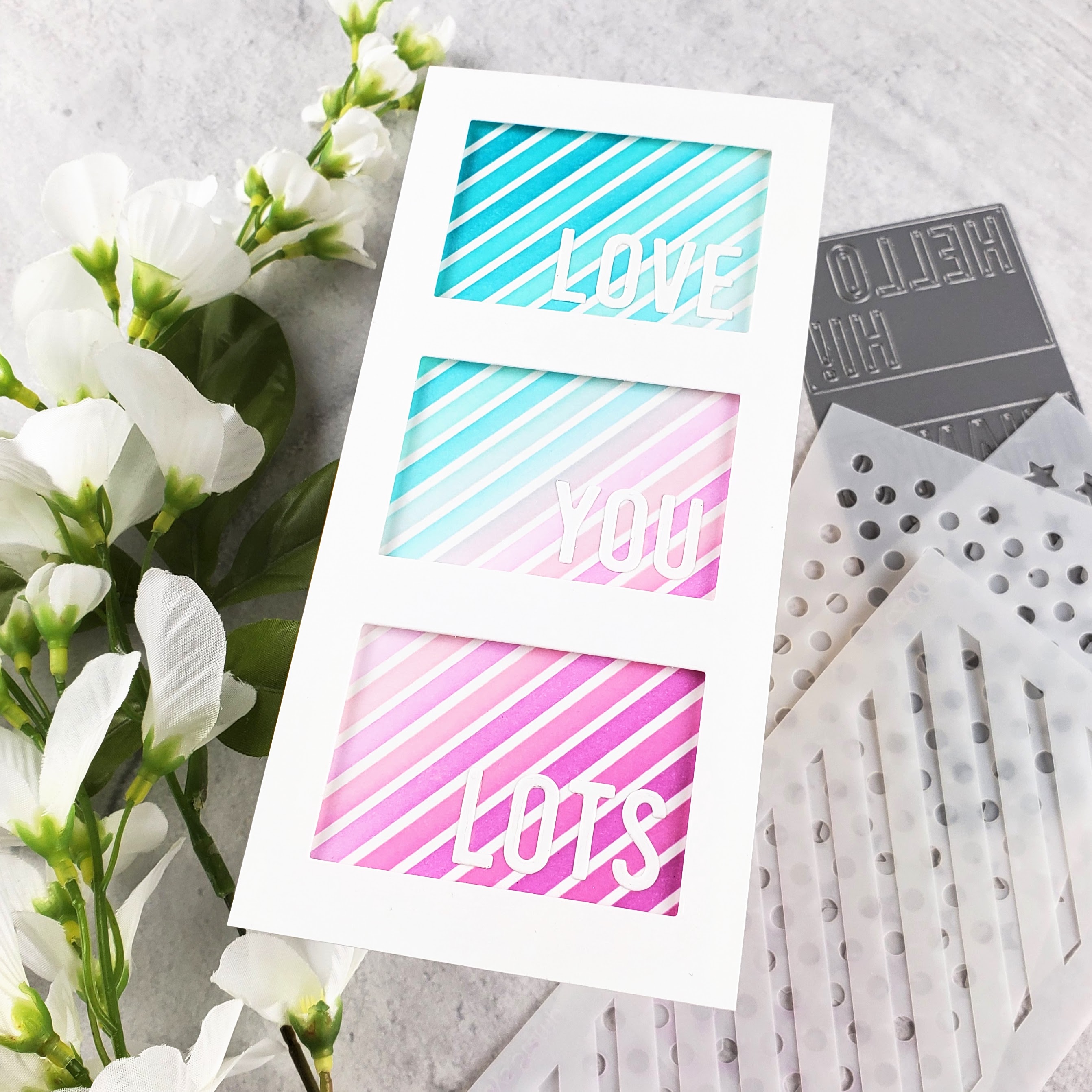 The new Simon Says Stamp All The Feels release is live and today I’m sharing a clean and simple card featuring two new slimline products: Mini Slimline Windows and Mini Slimline Stencils. The die includes six different words and since the letters fall out, you can mix and match to spell different words!