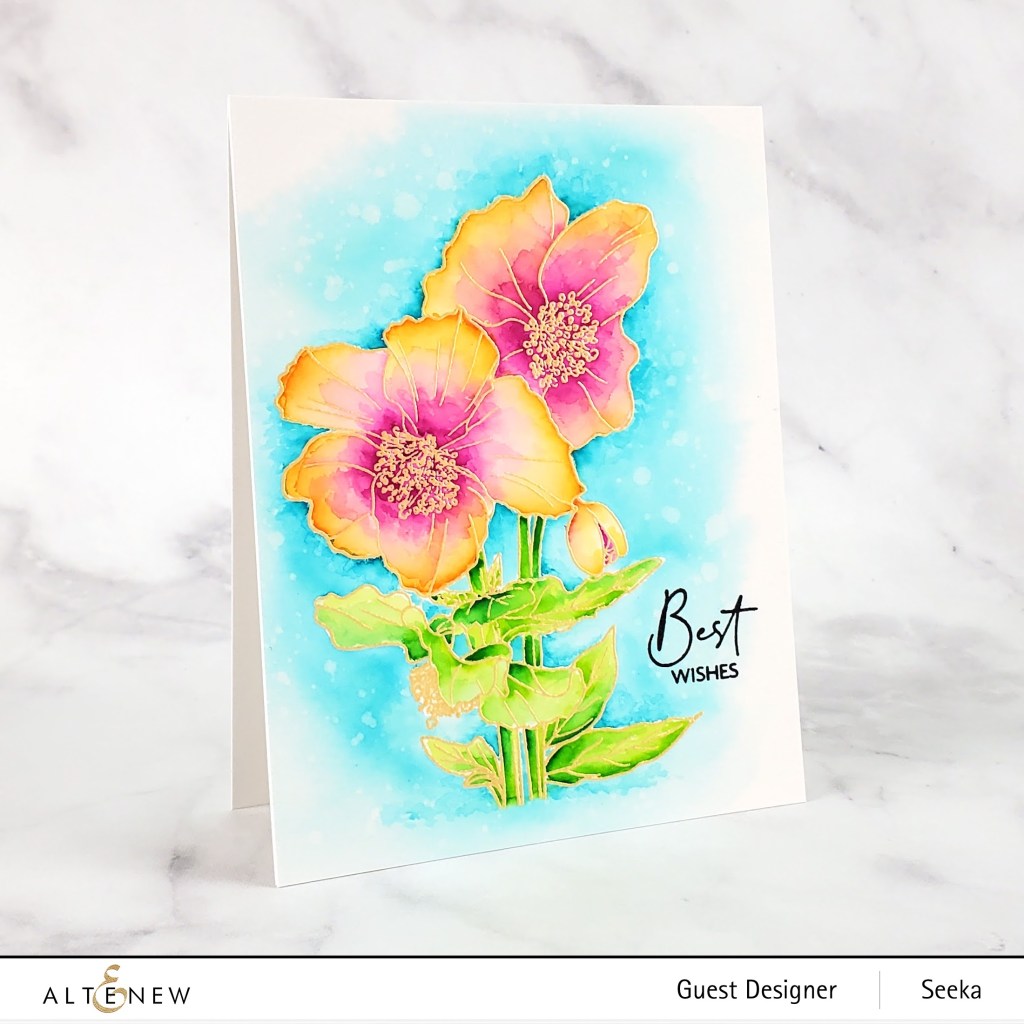 Hello and welcome, I hope your week has gotten off to a good start! Today we’re celebrating Altenew’s wonderful collection of watercolor pan sets with a blog hop and giveaway. If you arrived from wonderful Amber Rain Davis’ blog, you’re right on track. If you want to hop along from the beginning, please visit the Altenew Card Blog. Be sure to check the bottom of this post for giveaway information and the full blog hop list!